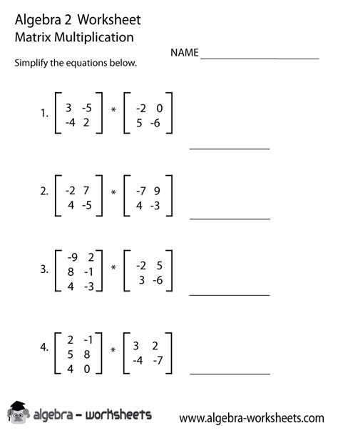 Matrix Multiplication Worksheets. Students will solve simple equations with matrices, determine compatibility for. (i) find ab and ba if possible.