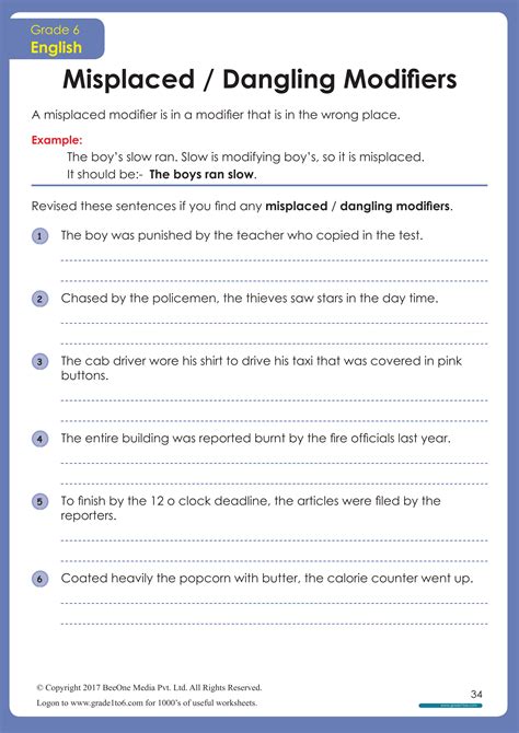 Web Misplaced Modifiers Interactive And Downloadable Worksheets.