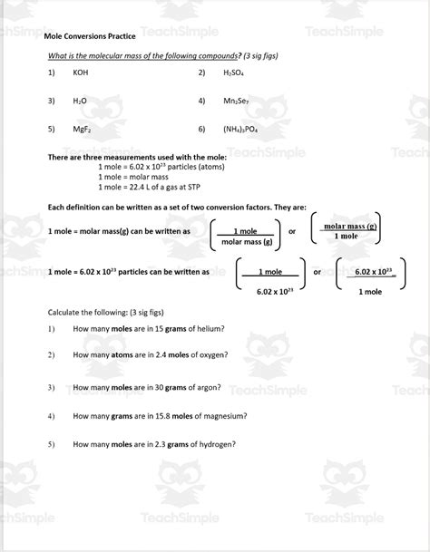 This Mole Conversions Worksheet Bundle Consists Of 5 Practice Problem Worksheets That Can Be Used As You Teach Your Lessons On The Mole Concept.