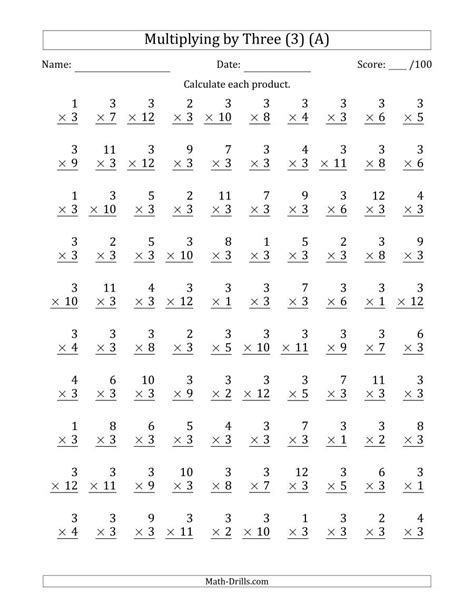 Web Here's Another Timed Multiplication Test With 0S, 1S, 2S, And 3S.