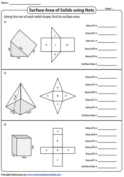 Nets And Surface Area Worksheets. Web area of e = area of f = printable worksheets @ www.mathworksheets4kids.com name : Using the net of each solid shape, !nd its surface area.