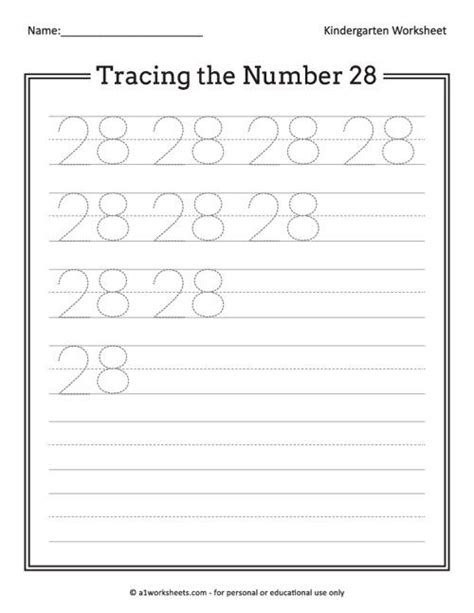 Number 28 Worksheet For Kindergarten Children.