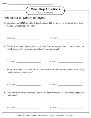 One Step Equations Word Problems Worksheets. Web these word problems involve variables and equations. Web grade 5 word problems worksheets.