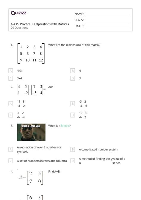 Operations With Matrices Worksheets. Matrix operations mathematics • 10th grade. Each entry in a matrix is referred to as aij, such that i.