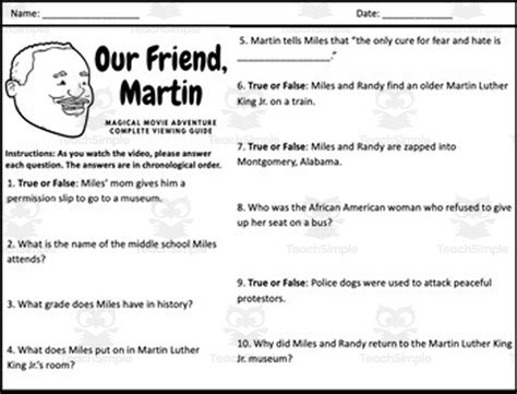 Our Friend Martin Movie Questions (Released 1999) Help Keep Students Engaged Throughout The Film By Providing 25 Questions For Them To Answer.