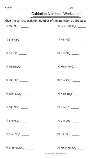 Oxidation Number Worksheet with Answers Worksheet for Kindergarten from everestctf.com